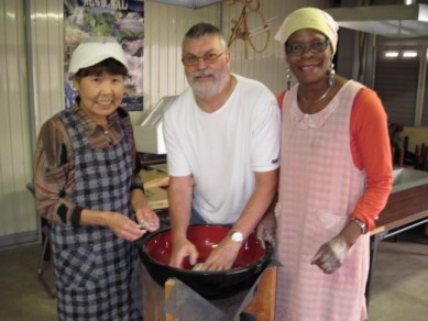 そば打ちも楽しくみづの荘の女将さんが、